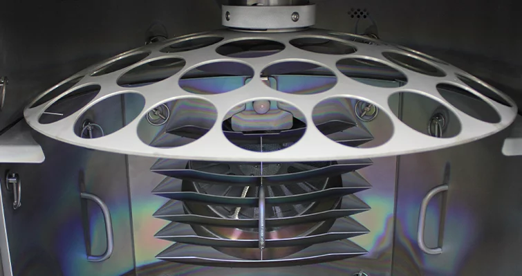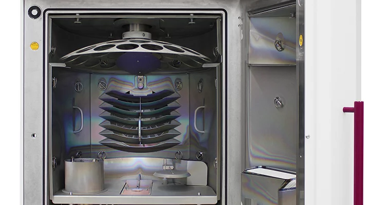 Die OptoTech OAC-60 ist mit ihrer Größe ideal geeignet für eine flexible Produktion von Brillengläsern in kleineren Chargen. Die Beschichtungsanlage mit Elektronenstrahlverdampfung wird für das Auftragen von hochwertigen Beschichtungen wie Antireflexbeschichtungen (AR), Clean Coats (CC) und Spiegelbeschichtungen sowie getönte Beschichtungen auf ophthalmischen Gläsern verwendet. Das OAC-Beschichtungssystem zeichnet sich durch die für OptoTech bekannte Produktqualität, einfache Handhabung und Zuverlässigkeit im täglichen Produktionsbetrieb aus.