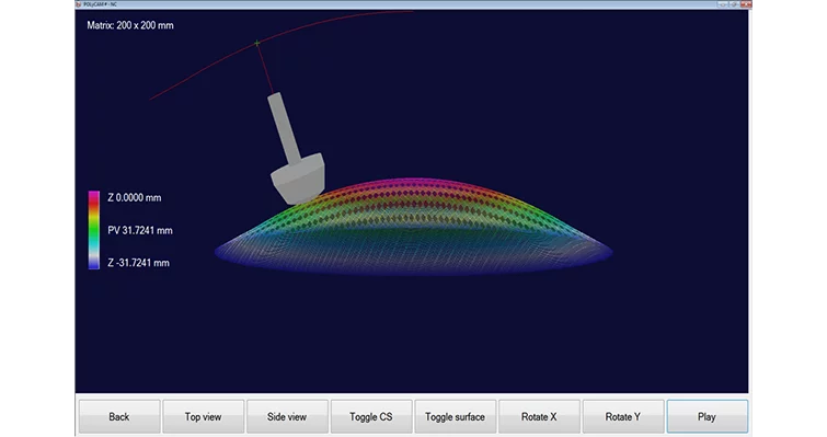 Softwarepaket zum Polieren und Feinkorrigieren von sphärischen und asphärischen Linsen, Plan- und Zylinderoptiken sowie Freiformflächen im 3D-Modus. Verschiedene Werkzeugpfade stehen zur Auswahl.