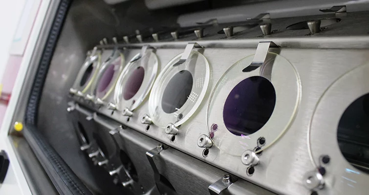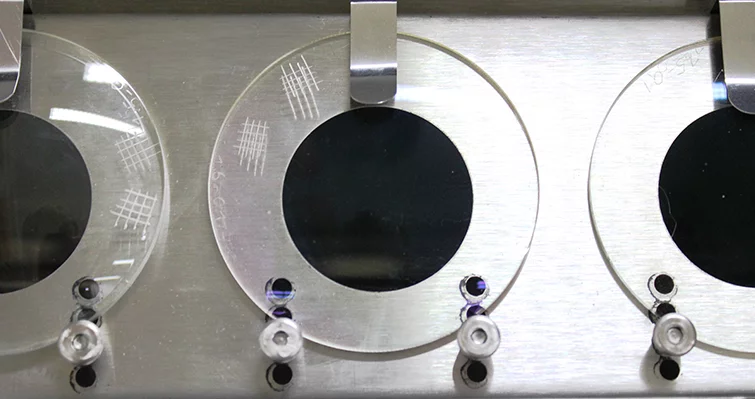 Qualitätstest der Beschichtung durch beschleunigte Alterung unter Behandlung mit Wärme, Feuchtigkeit und UV-Strahlung.