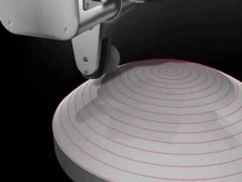 Das Polierrad wird wird in der Maschine abgerichtet und damit justiert. Die Abtragsleistung und die Größe des Spots sind variabel. Durch einen sehr kleinen Spot und die hochgenaue Achsführung lassen sich somit sehr feine Korrekturen durchführen. Aber auch Abträge von mehreren μm in einem Arbeitsschritt sind kein Problem. Eine große Rolle spielt dies bei der modernen Asphärenfertigung. Um störende Mid-Frequenzen zu vermeiden kann die Asphäre aus einer vorpolierten Sphäre umpoliert werden, was normalerweise sehr zeitaufwendig oder in gewünschter Genauigkeit gar nicht möglich ist.