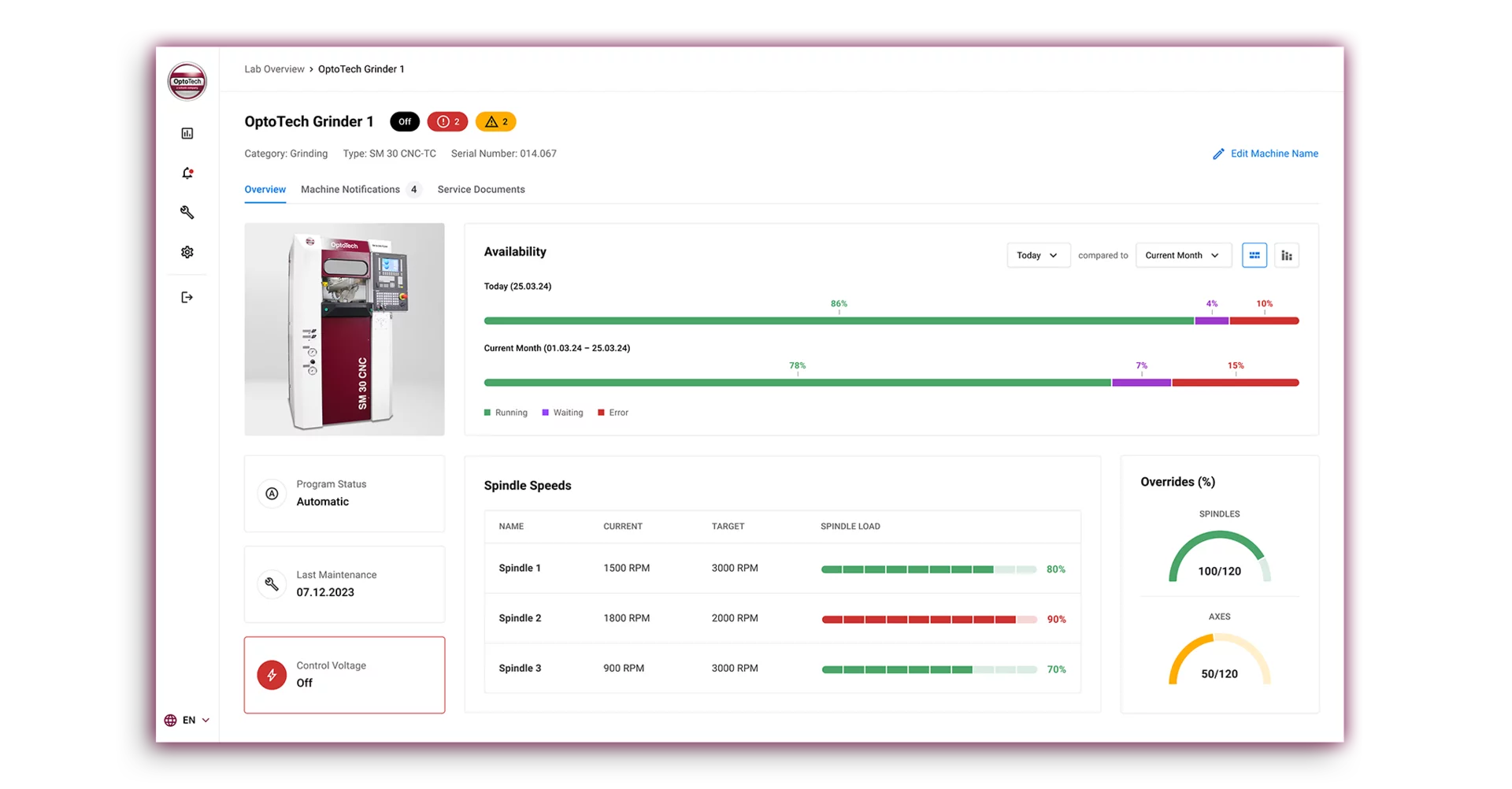 OptoSight® streamlines production lab management to optimize machine efficiency. It facilitates real-time production monitoring by analyzing machine data and performance metrics to reduce downtime and enhance productivity.