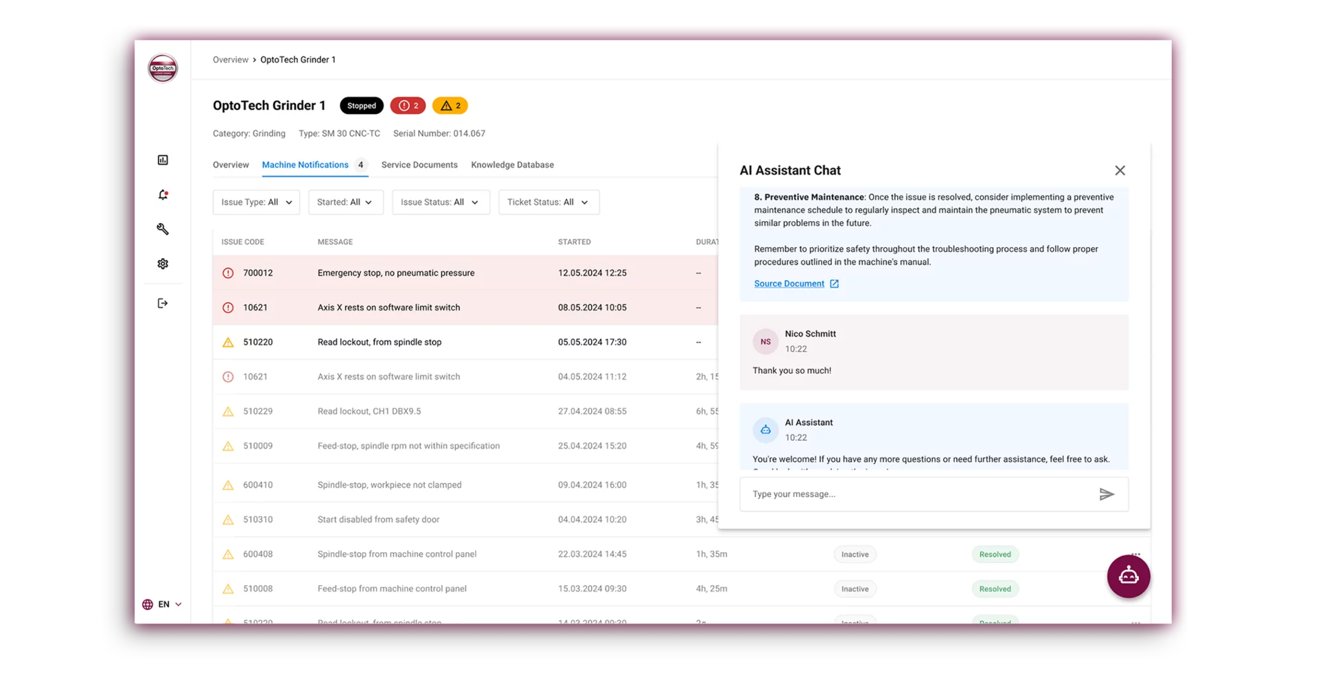 ¬ Track machine availability and view parameters and performance data in real-time